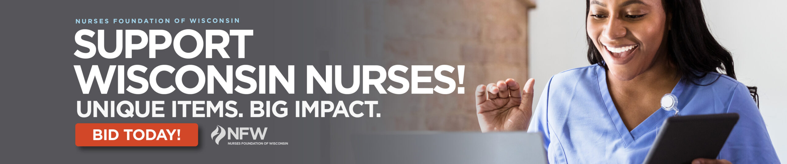 The Nurses Foundation of Wisconsin (NFW) invites you to participate in our online Silent Auction. The proceeds will be used to support nursing education scholarships and research or quality improvement projects. NFW is a nonprofit organization dedicated to promoting the health of Wisconsin by advancing the nursing profession through financial support of education and research.